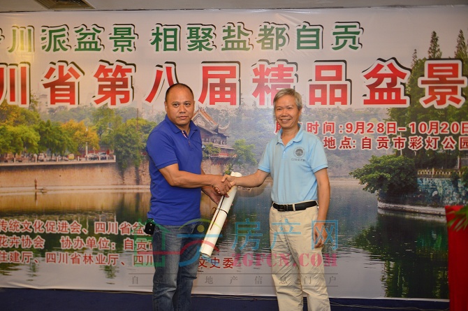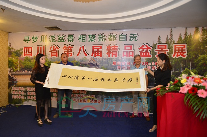 隨后,自貢市美術(shù)家協(xié)會(huì)副主席、著名畫(huà)家、書(shū)法家徐祥麟老先生登臺(tái),向盆景展組委會(huì)贈(zèng)送他親手所提的“四川省第八屆精品盆景展”書(shū)法作品一幅。徐老的書(shū)法風(fēng)格飄逸儒雅、剛?cè)嵯酀?jì)、形神兼?zhèn)、彰顯了一種獨(dú)特的文化內(nèi)蘊(yùn),這是徐老用三寸筆鋒對(duì)本次盆景展寄予的厚望和對(duì)我們做好東道主、展示自貢新形象、辦好省級(jí)盛會(huì)提出的更高要求!
