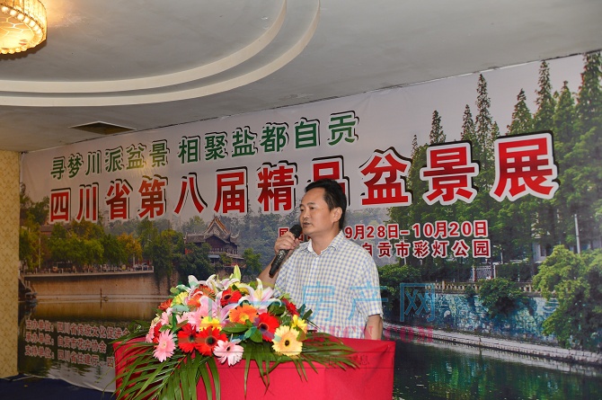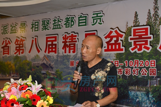 自貢市花卉協(xié)會(huì)會(huì)長(zhǎng)王室康登臺(tái)致辭