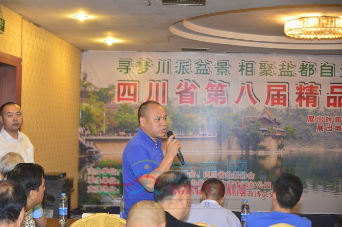 四川省盆景協(xié)會(huì)輪值會(huì)長(zhǎng)鄧文祥介紹展出籌備情況