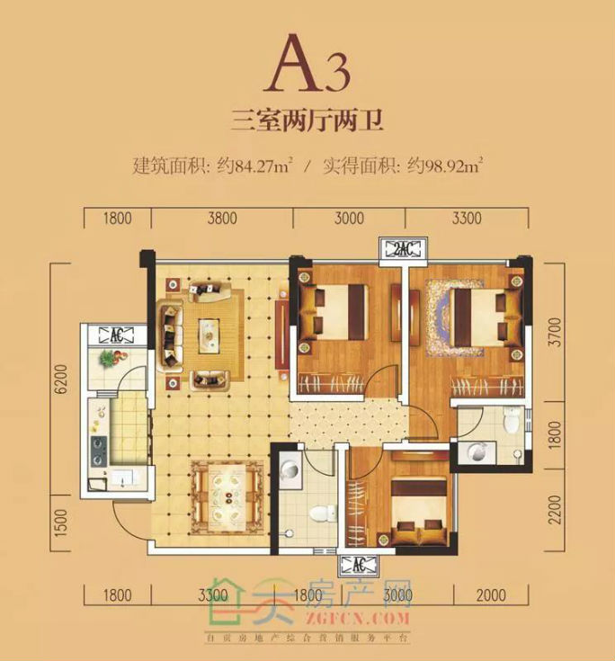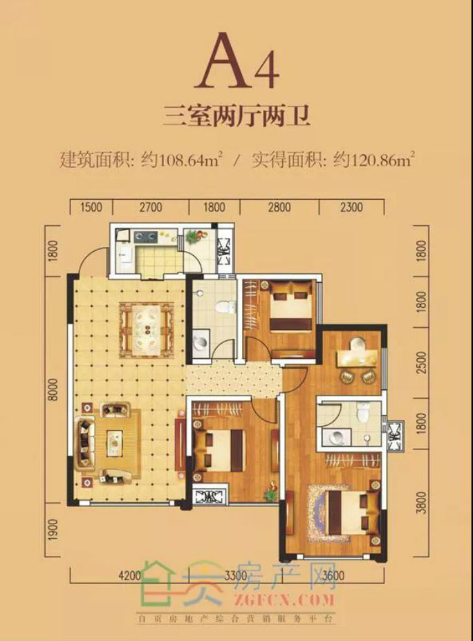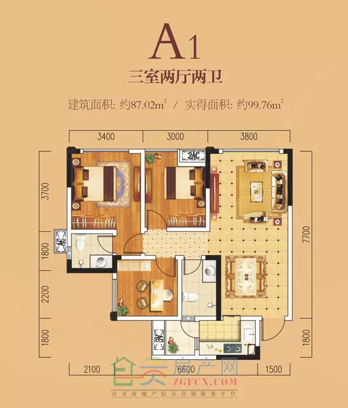 14#、15#樓為28+1F、29+1F電梯公寓兩梯六戶,戶型有A1、A2、A3、A4,均為三室兩廳兩衛,面積分別為:87.02㎡、94.2㎡、84.27㎡、108.64㎡。