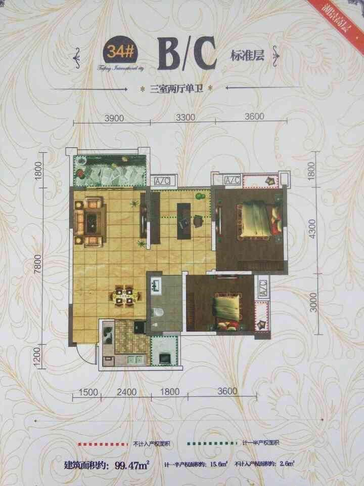 房屋戶型3室2廳1衛