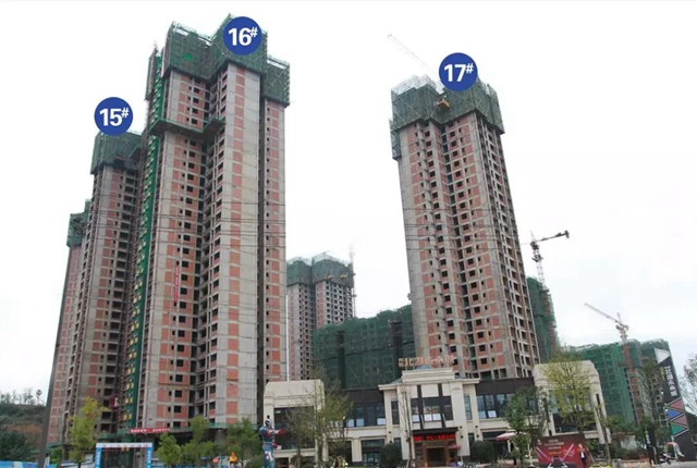 17號樓結構封頂,磚砌體完成25層,內墻抹灰12層。