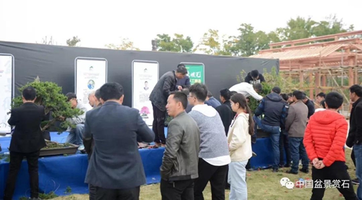 ▲ 銷售區(qū)藏鋒園與盆景作者現(xiàn)場互動