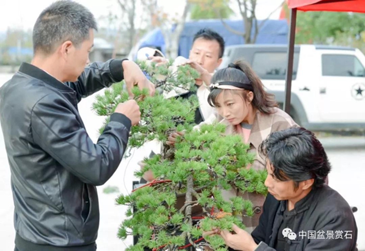 11月10日下午,由中國盆景作家、中國盆景藝術(shù)家協(xié)會副秘書長、山東省東營市盆景協(xié)會副會長兼秘書長李國賓,中國盆景高級技師張柏云,以及中國盆景高級作家詹國燈分別做了真柏、黑松、真柏的現(xiàn)場制作表演。