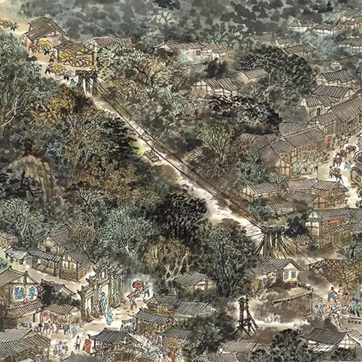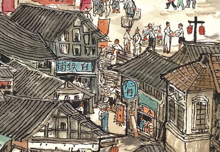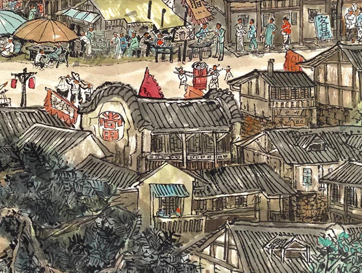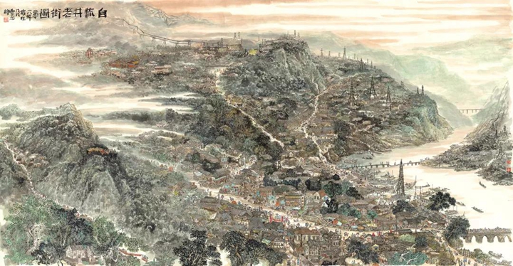 近來曹念所繪的《自流井老街圖》中,將民國時期這一帶的風貌描繪出來,這幅巨作背后隱藏了許多的故事,這些故事正是屬于這座城市的記憶,是屬于這座城市的鄉愁,它們被鐫刻在老街的身后,情深意長,詠頌不絕。