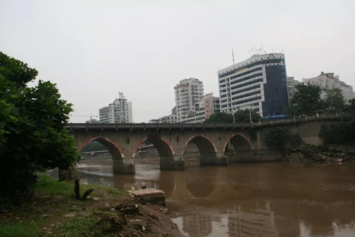 善后橋始建于1921年,1925年峻工。橋樑橫跨自貢釜溪河,為整體石拱橋,橋長100米,橋寬16.8米,橋高7米,橋身有大小7個橋洞,還有12處“神龍怪獸”。整體以堅硬細致的青坨石為材料、石灰拌糯米漿為粘合劑修建而成,橋身穩固,近百年來一直是自貢人民不可或缺的交通要道。