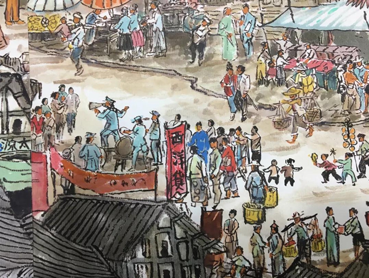 ▲曹念繪《自流井老街圖》紙本設色,5米X2.5米