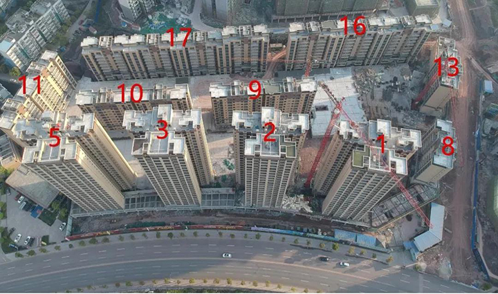 二期21#樓主體27層完畢,其它樓棟完工