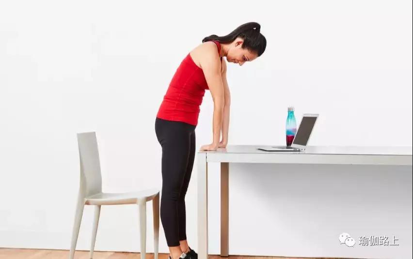 雙手撐在桌子上,嘗試從髖部向下折疊